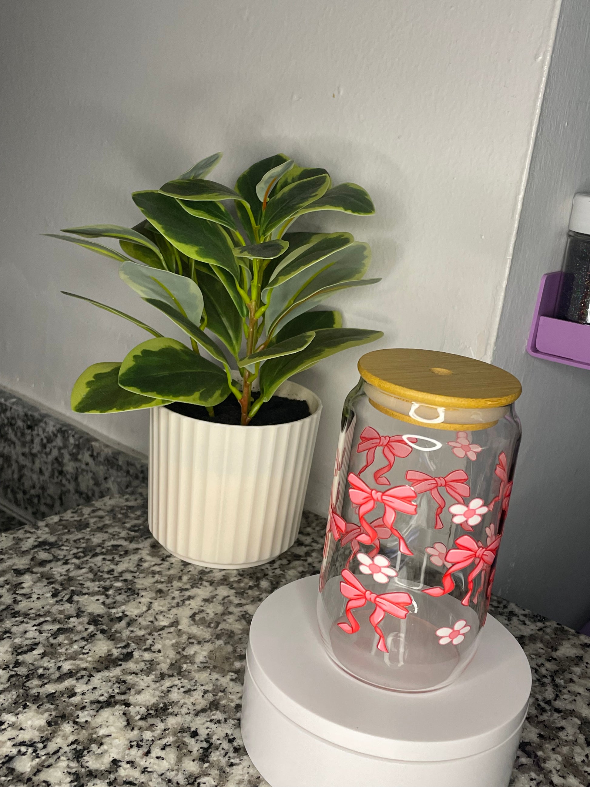• Includes a clear glass straw